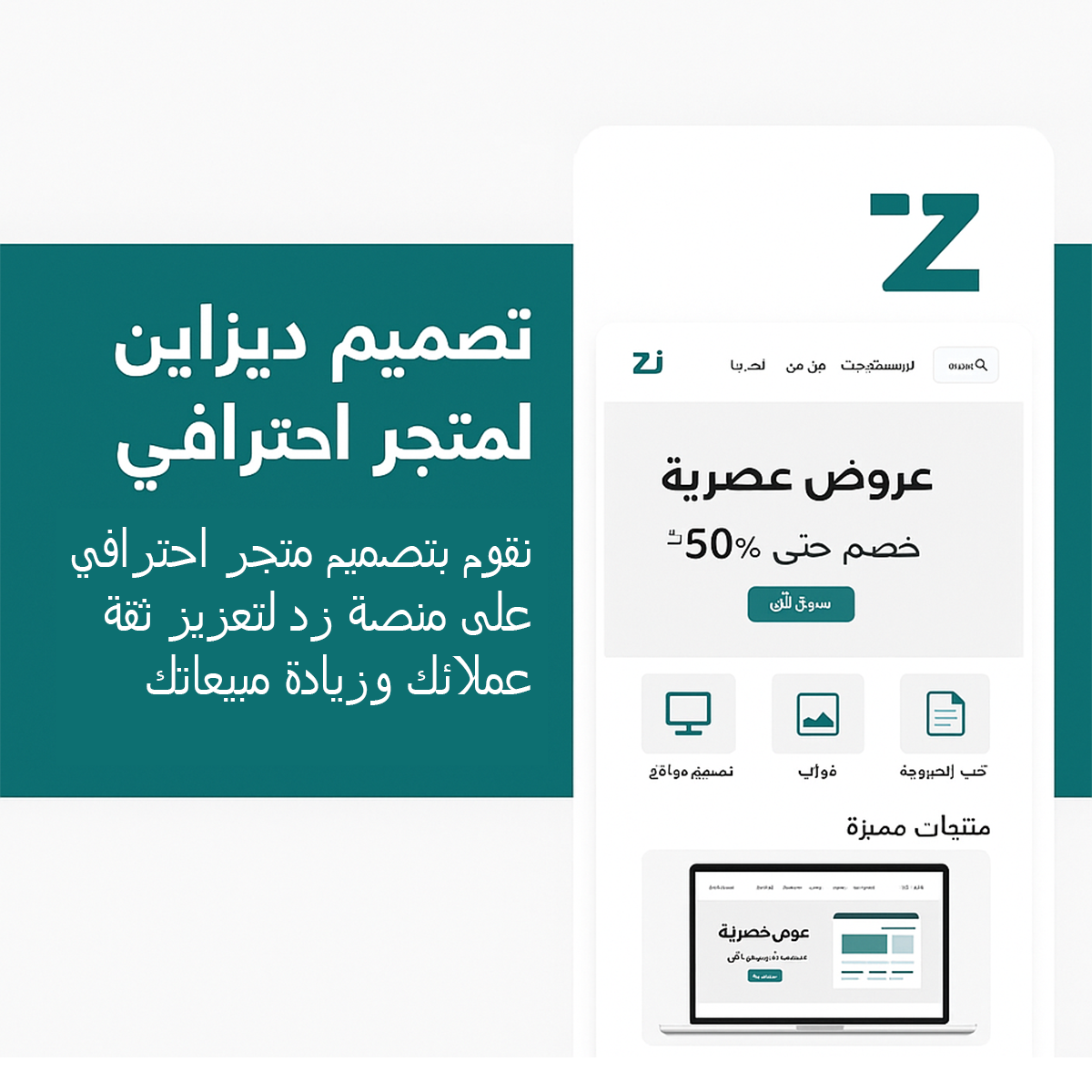 قدّم لك خدمة تصميم ديزاين احترافي مخصّص لمتجرك على منصة زد، بتصميم عصري ومتناسق يعكس هويتك التجارية ويمنح عملاءك تجربة تسوّق مميزة.