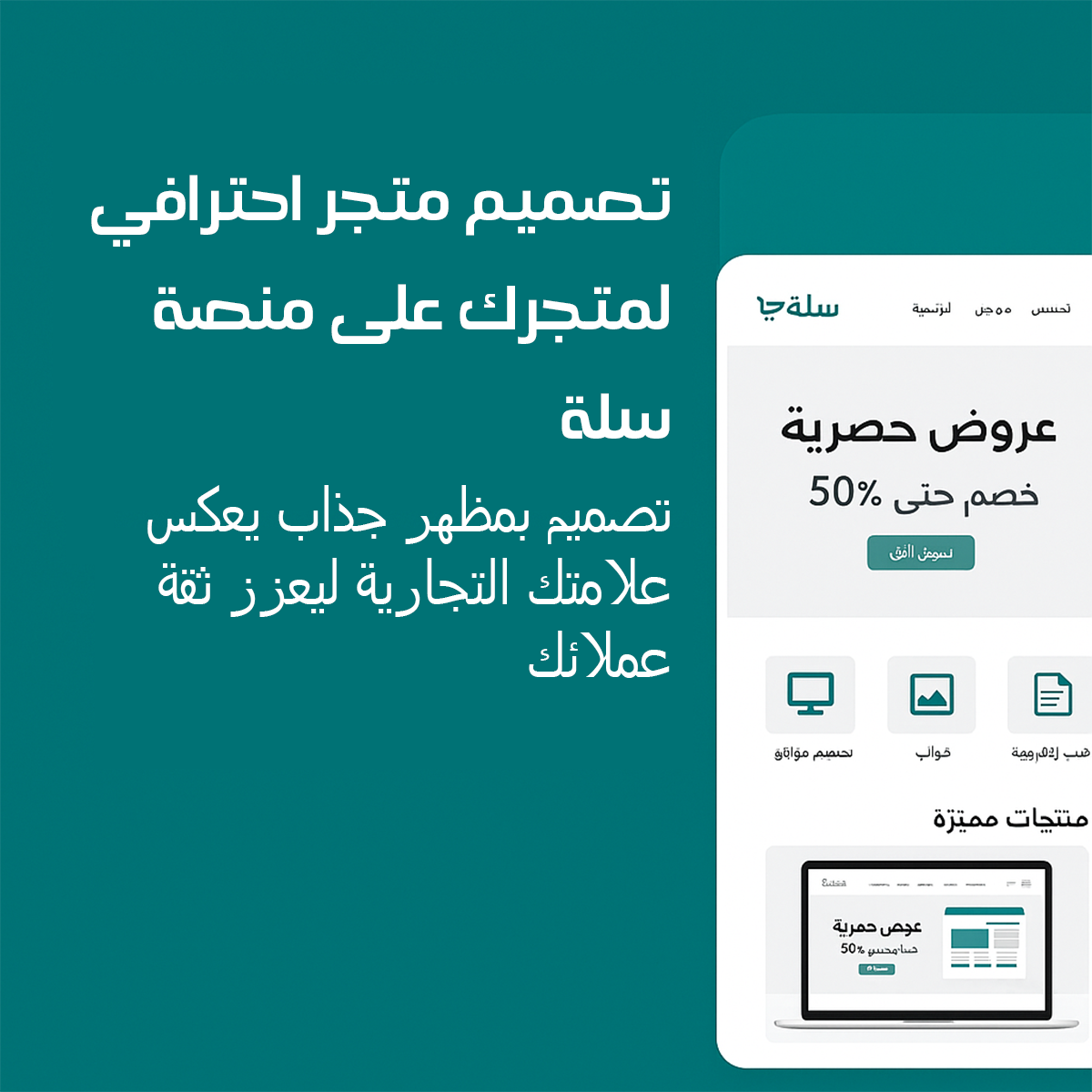 قدّم لك خدمة تصميم ديزاين مخصص لمتجرك على منصة سلة بمظهر احترافي وعصري يعكس هويتك التجارية ويجذب عملاءك.